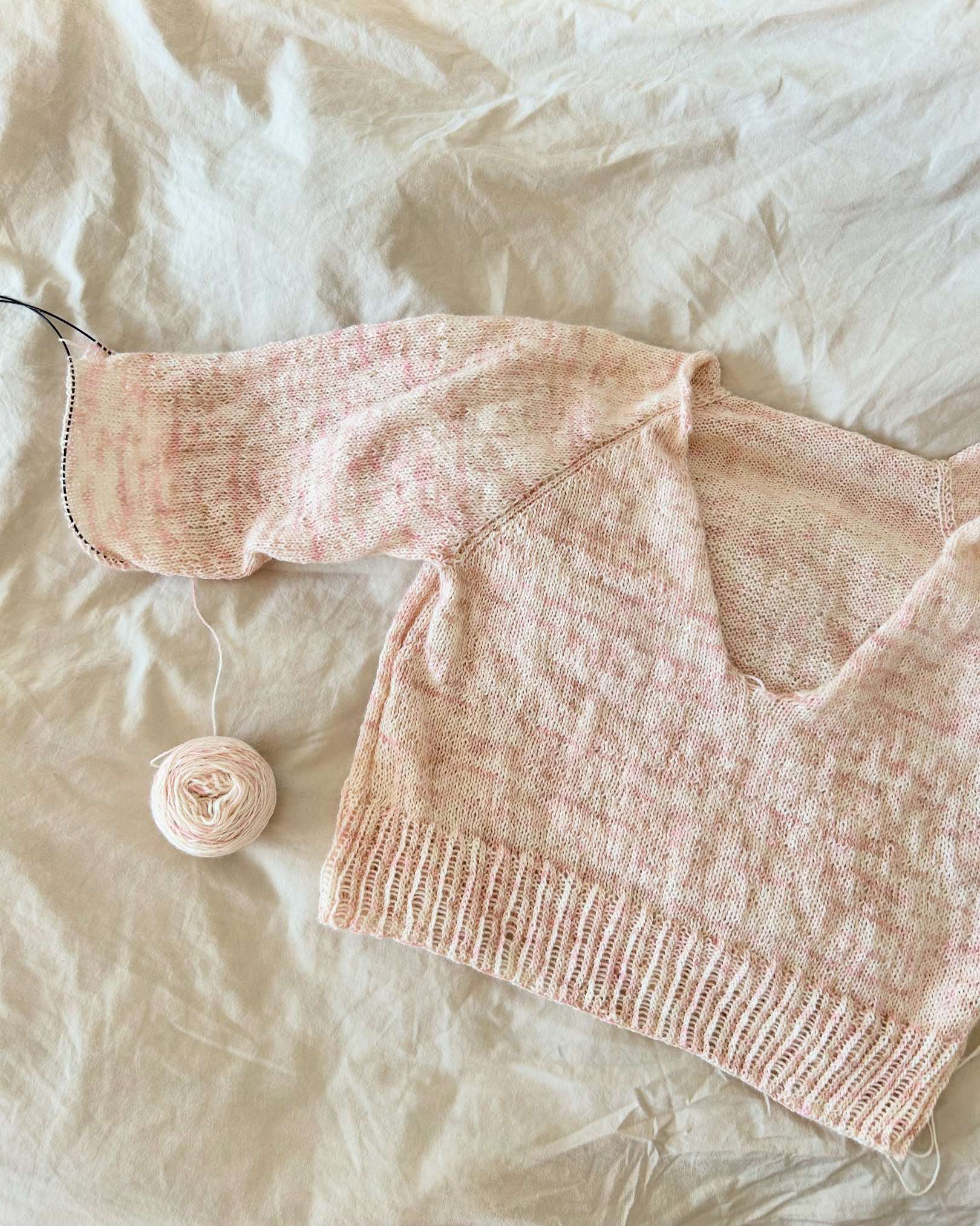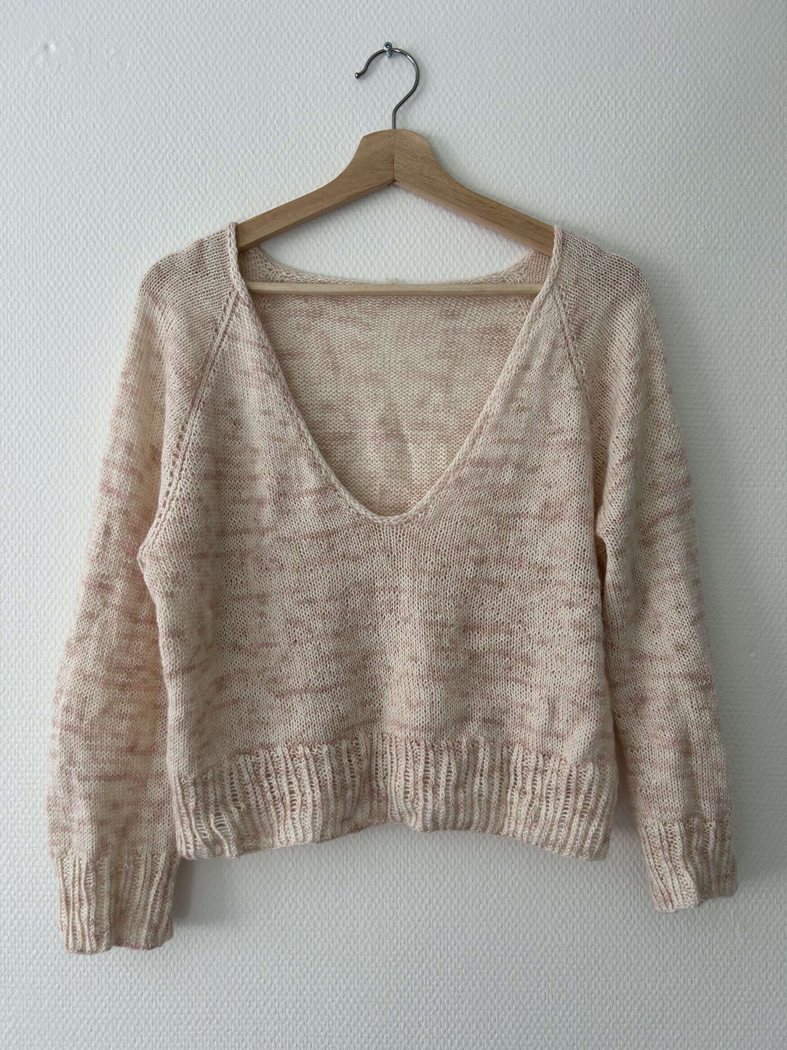All Days Blouse strikkes oppefra og ned. Den har en detalje med mønster masker gennem hele blusen. Blusen formes ved hjælp af raglanudtagninger, hvorefter blusens krop strikkes rundt med mønstermasker i siderne.