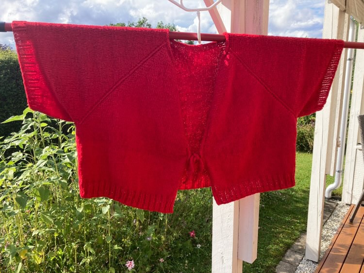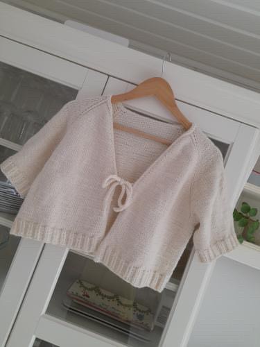 All Days Summer Cardi strikkes oppefra og ned I to tråde Merci fra Filcolana. Den har en detalje med mønster masker gennem hele cardiganen. Cardiganen formes ved hjælp af raglanudtagninger, hvorefter cardiganens krop strikkes frem og tilbage og til sidst afsluttes med en i-cord kant og bindebånd