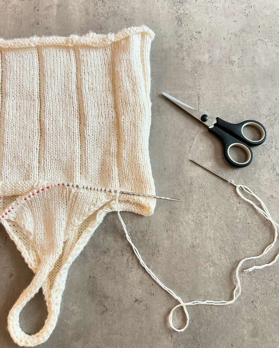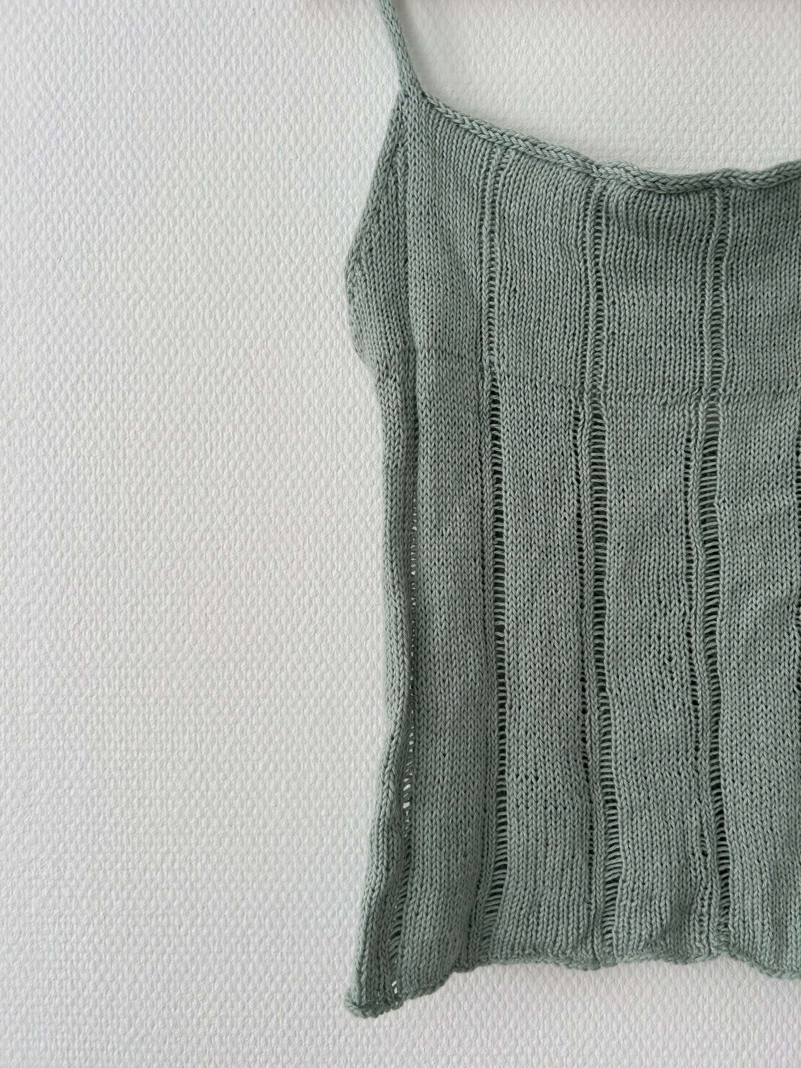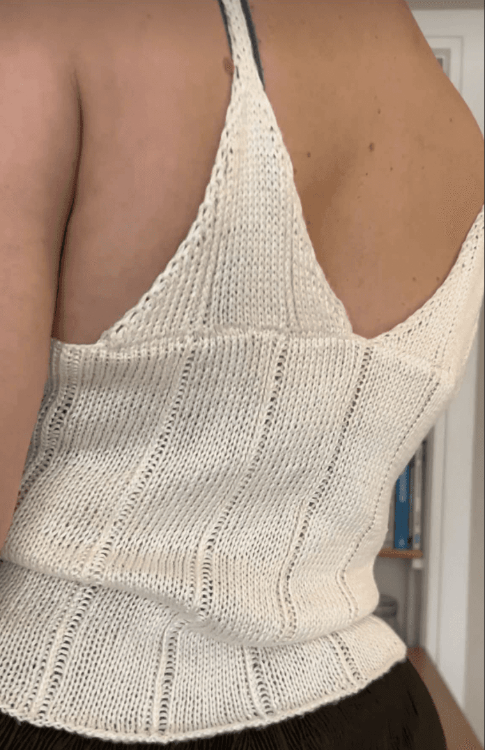 All Days Top strikkes nedefra og op I én tråd. Den har en detalje med mønster masker gennem hele toppen der giver et stribet look. Toppen kan strikkes på to måder. Enten kan den strikkes med v-udskæring eller med i-cord stropper.