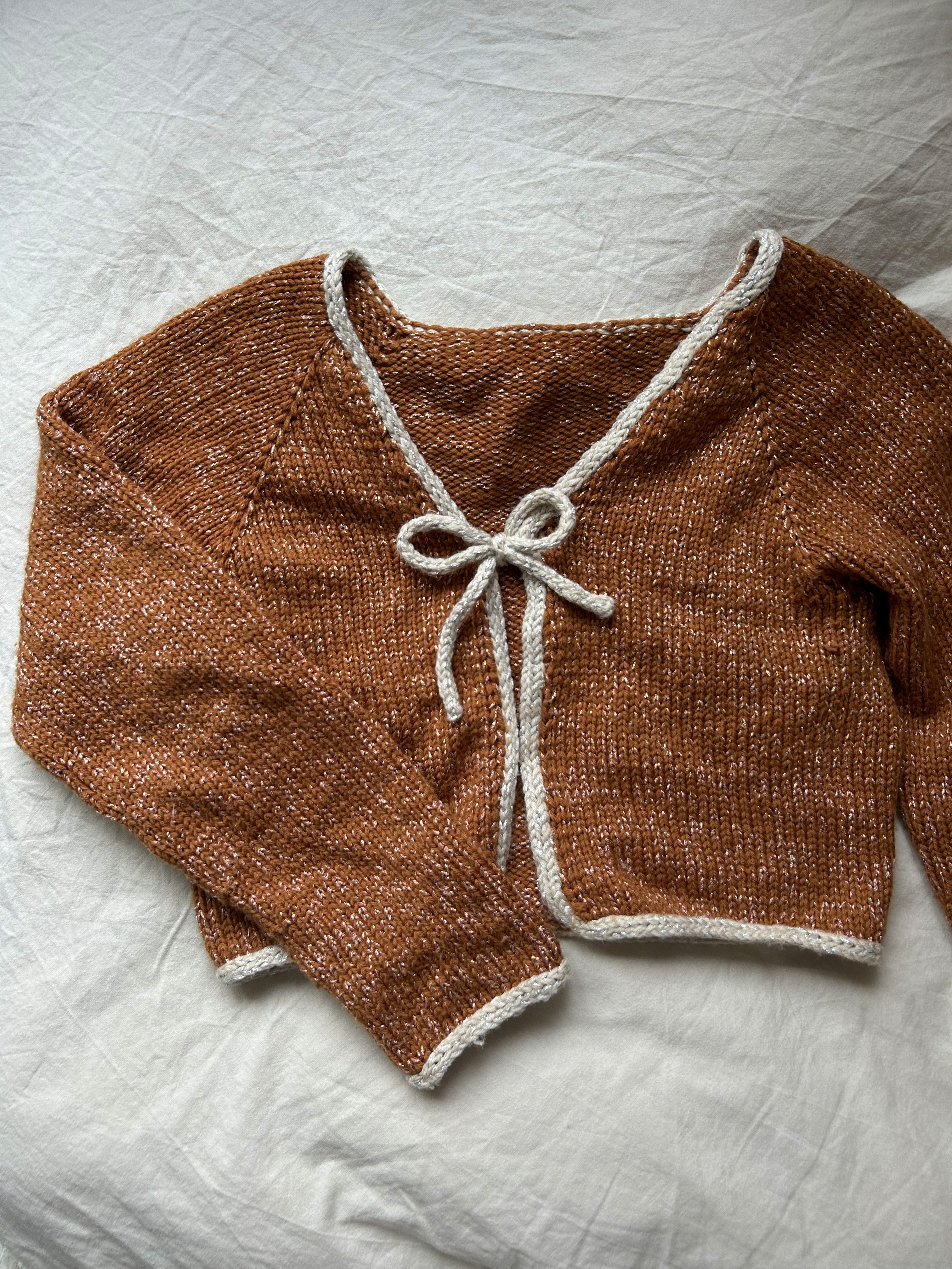 All The Sparkles Cardigan strikkes oppefra og ned. Cardiganen formes ved hjælp af raglanudtagninger, hvorefter cardiganens krop strikkes frem og tilbage og til sidst afsluttes cardiganen med en i-cord kant og et bindebånd.