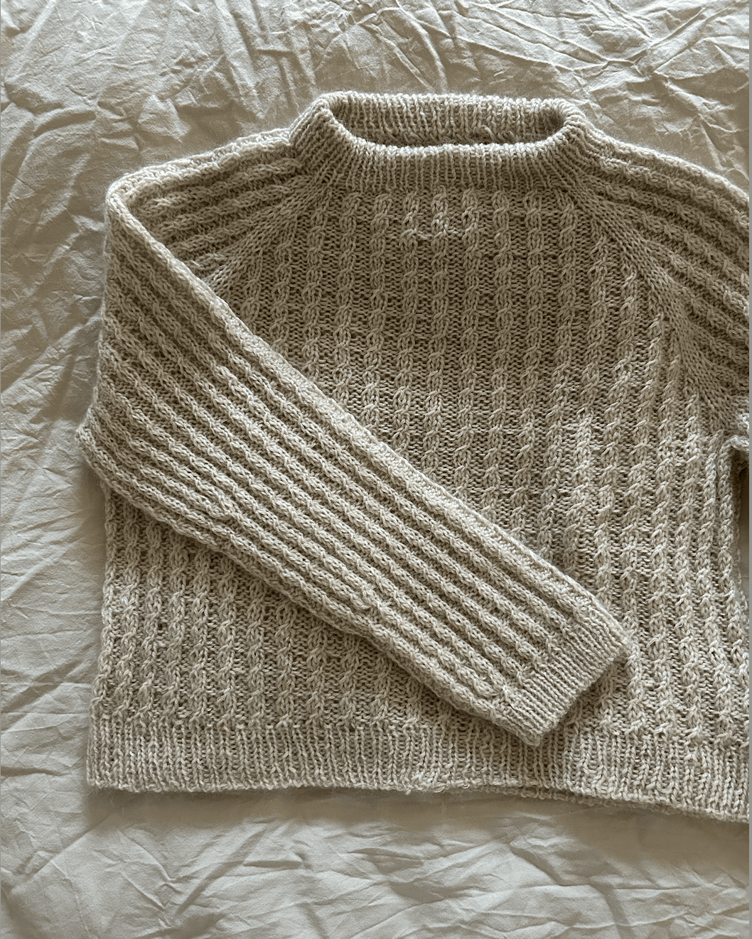 Bille Sweater er let oversized og har et enkelt snoningsmønter gennem hele sweateren. Sweateren strikkes oppefra og ned og formes ved hjælp af raglanudtagninger. Kroppens- og ærmernes masker deles og strikkes herefter hver for sig og afsluttes med en ribkant.