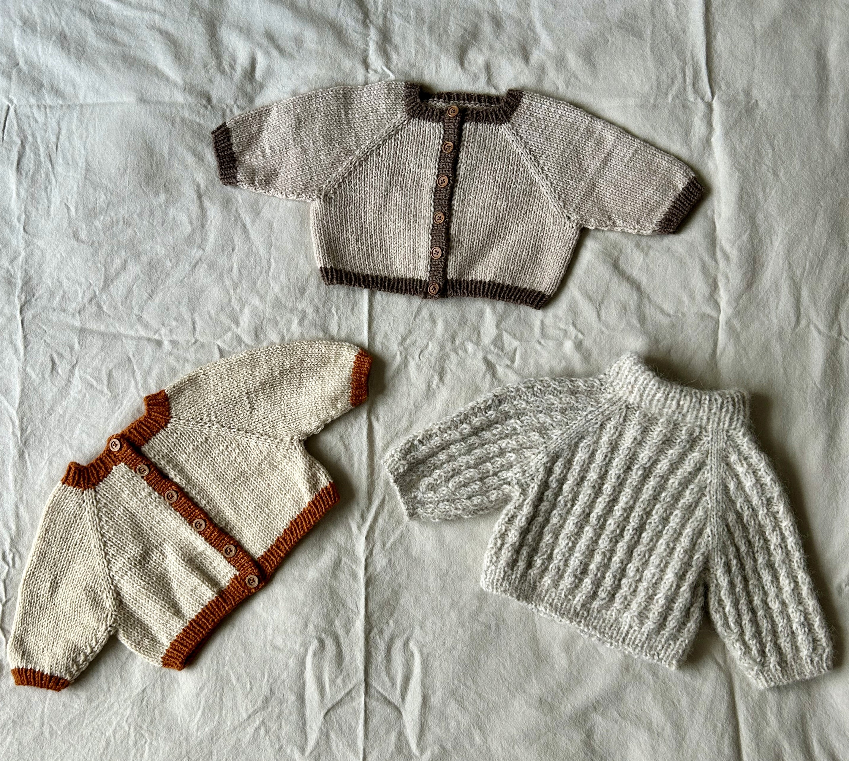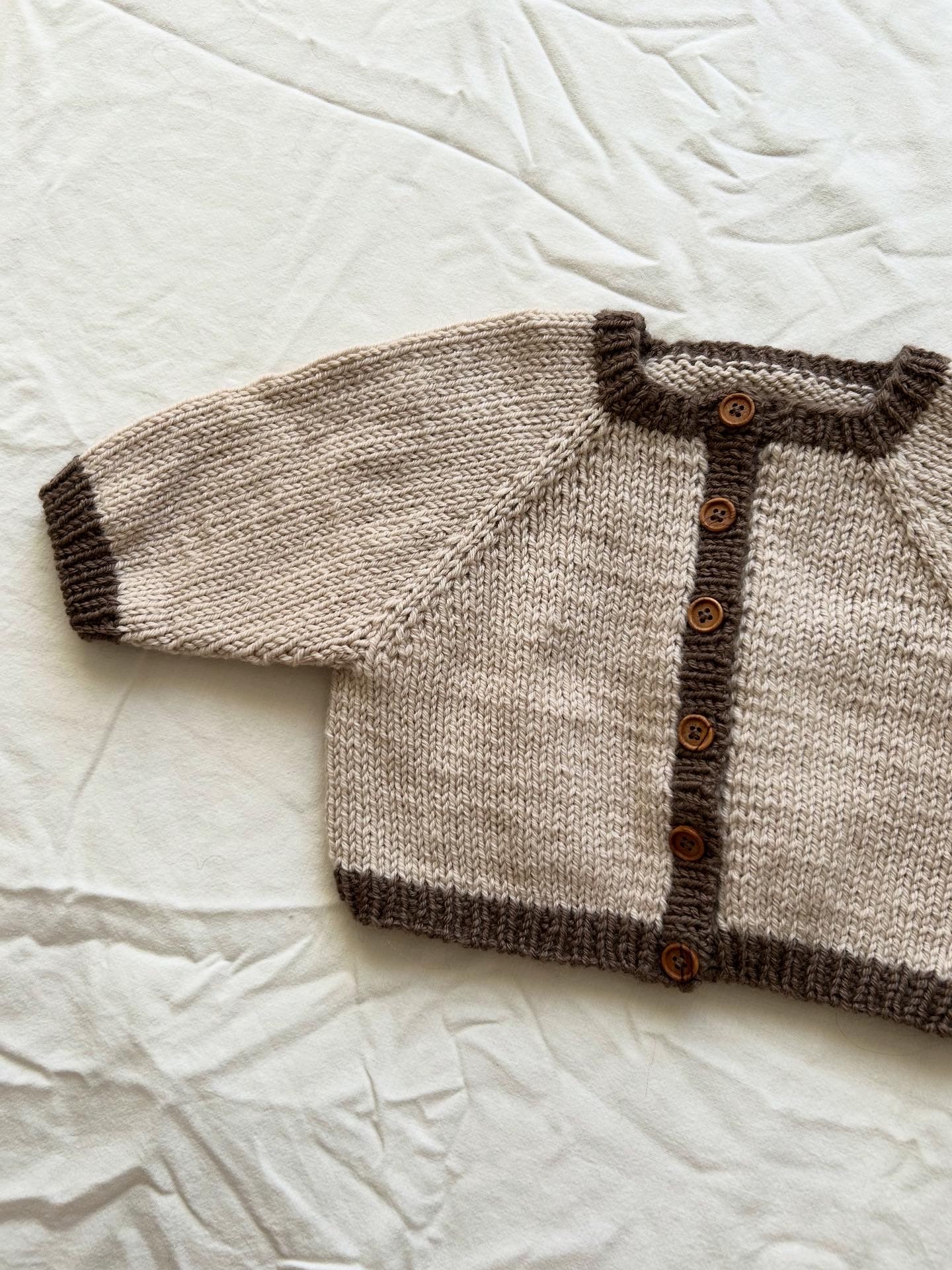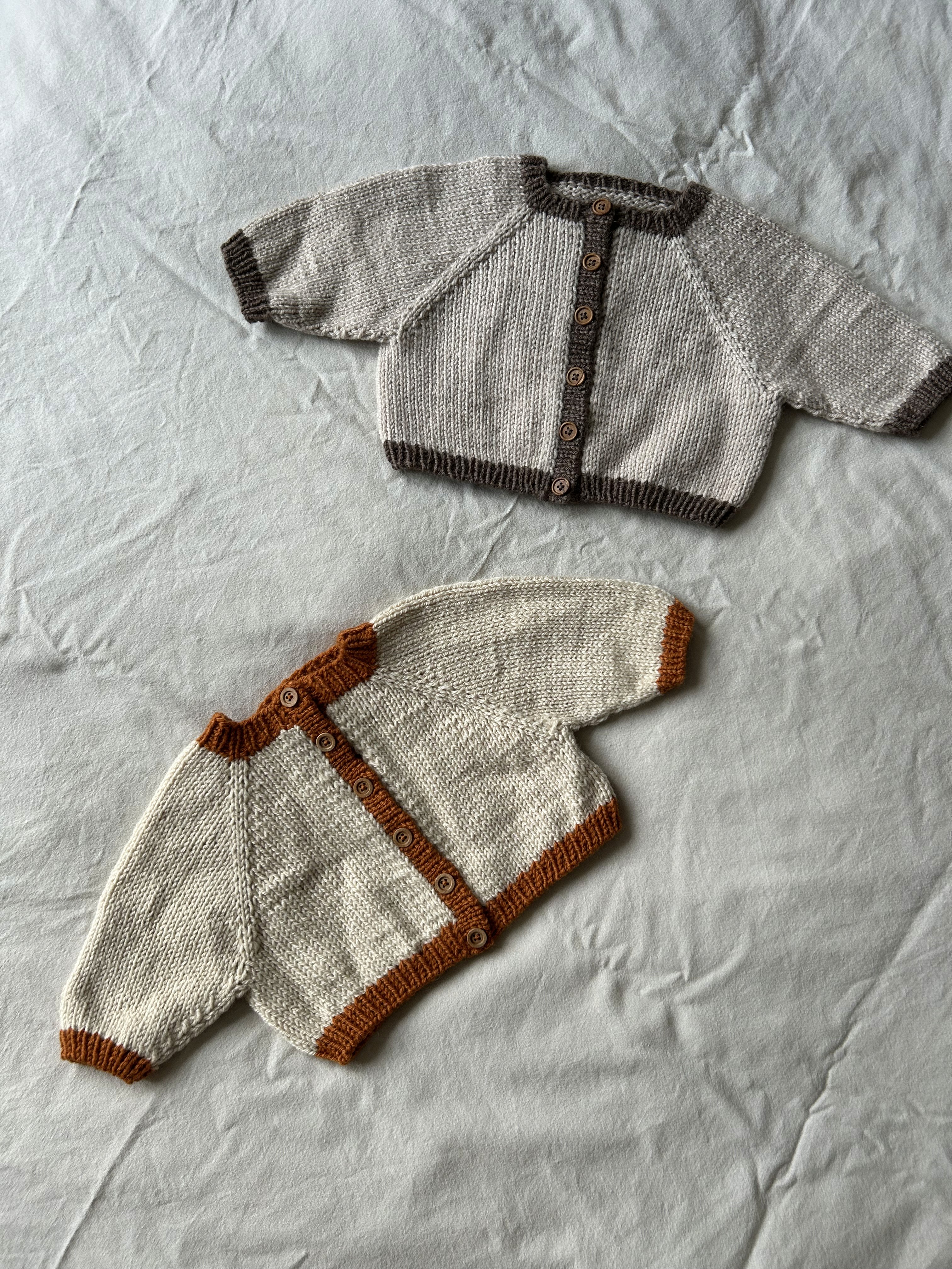 Hege Cardigan er en let cardigan at strikke til de mindste. Cardiganen strikkes oppefra og ned og formes ved hjælp af raglanudtagninger. Kroppens- og ærmernes masker deles og strikkes herefter hver for sig og afsluttes med en ribkant.