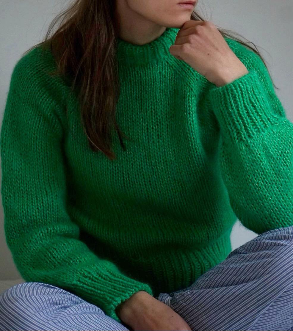 Lazy Sweater er en enkel og chunky sweater. Sweateren strikkes oppefra og ned og formes med raglanudtagninger.