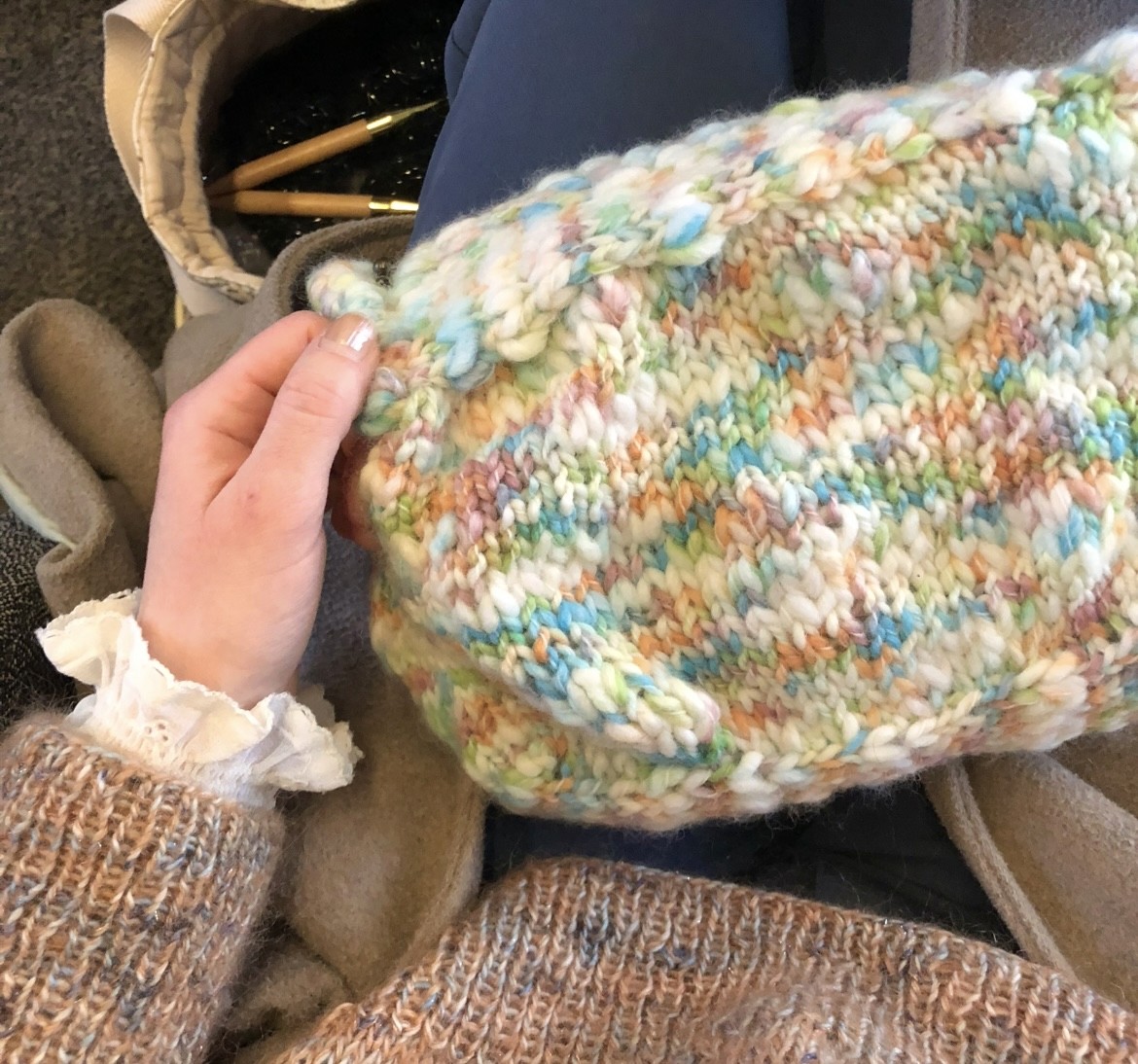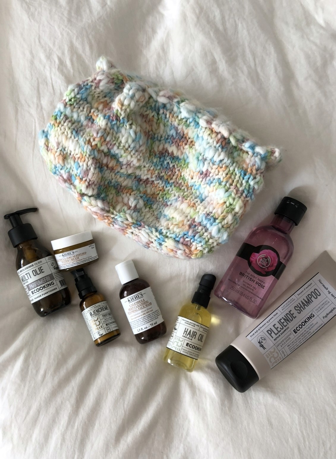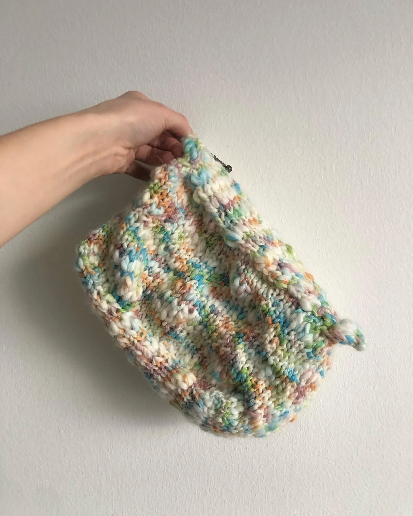 Lazy Washbag må være en af de nemmeste tasker, du kommer til at strikke. Taskens bund strikkes først, hvorefter væggene strikkes i forlængelse af bunden.