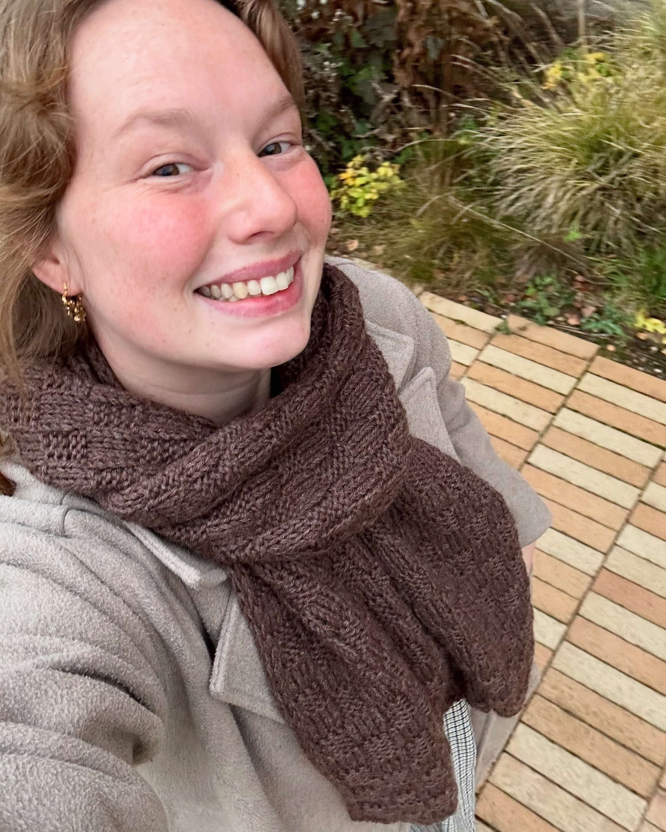 Square Scarf er et enkelt og let halstørklæde at strikke. Halstørklædet strikkes med skiftevise ret- og vrangmasker og kanten formes ved i-cord masker.